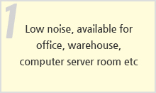 - No heating air, thus, available for small area and industrial use by low noise